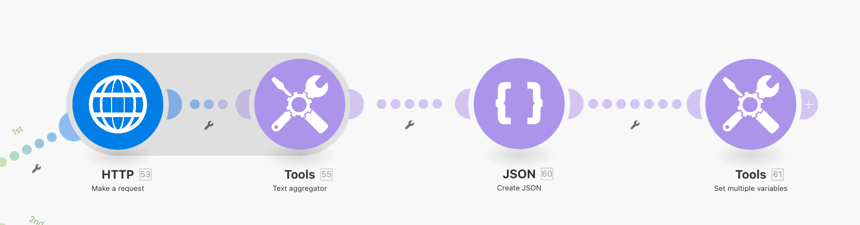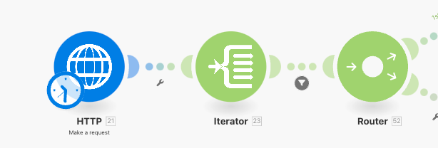 Let's move to make.com and, as the first step of our automation, use the /catalogs endpoint to fetch all the catalogs saved in Braze. In this step Braze will tell us all the catalogs that are in the platform. Thanks to the naming convention, we know that only catalogs with _translations in their name need to be translated. I expect in this phase to get the catalog named christmas_martechdude_translations. The scenario includes an iterator function (similar to a for each) that will execute the next steps for each catalog entry retrieved. While I’ll use a single translation as an example, the scenario can handle multiple translations simultaneously.