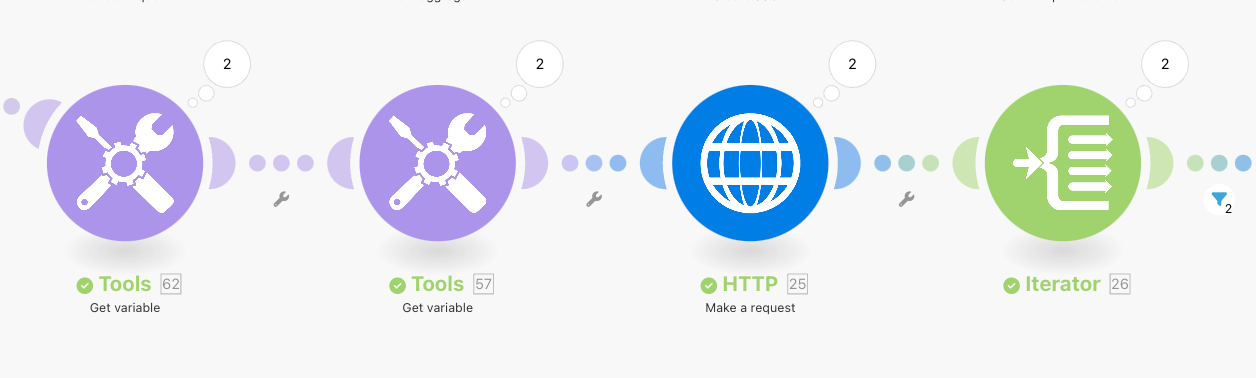 At this point, I will use the iterator function to process the next step for each item retrieved from the call, excluding the en item and any translations that have already been completed.